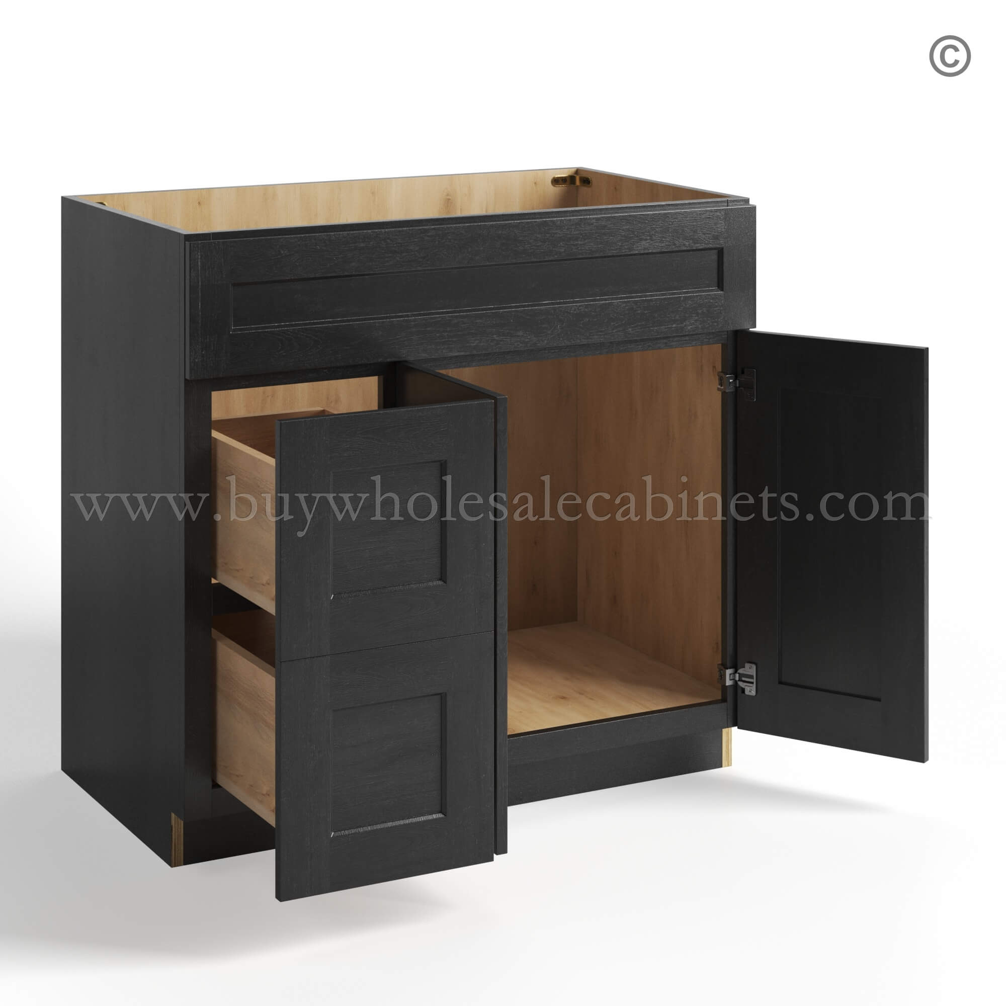 Charcoal Black Shaker Vanity Sink Base Combo 42″W