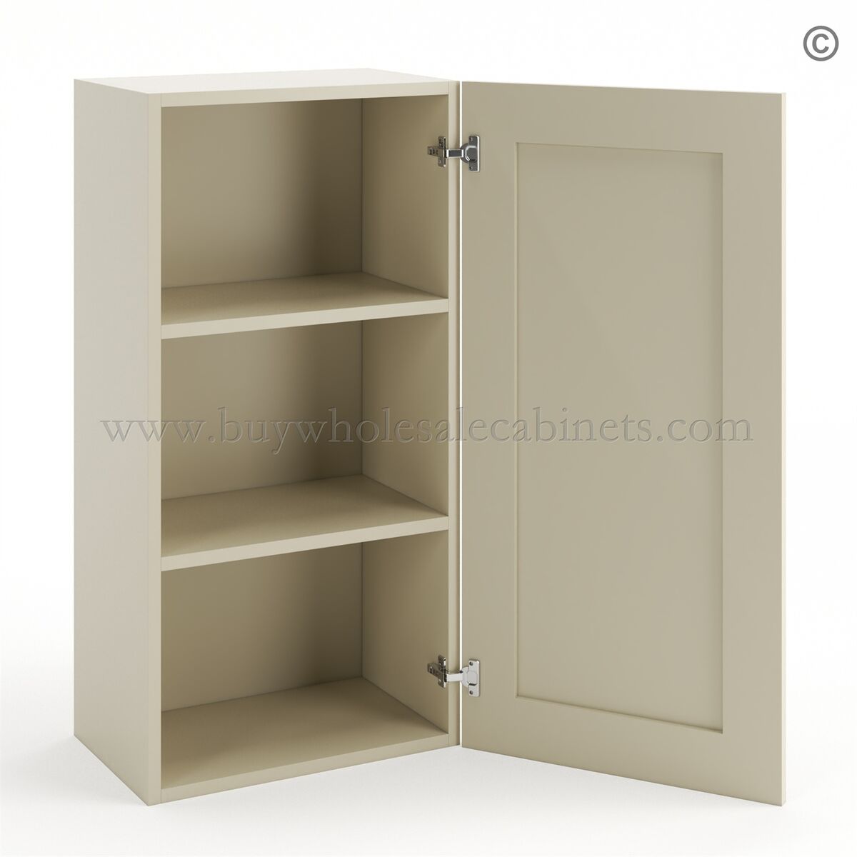 Frameless Ivory White 36″ Tall Wall Cabinet – 1 Door 2 Shelves