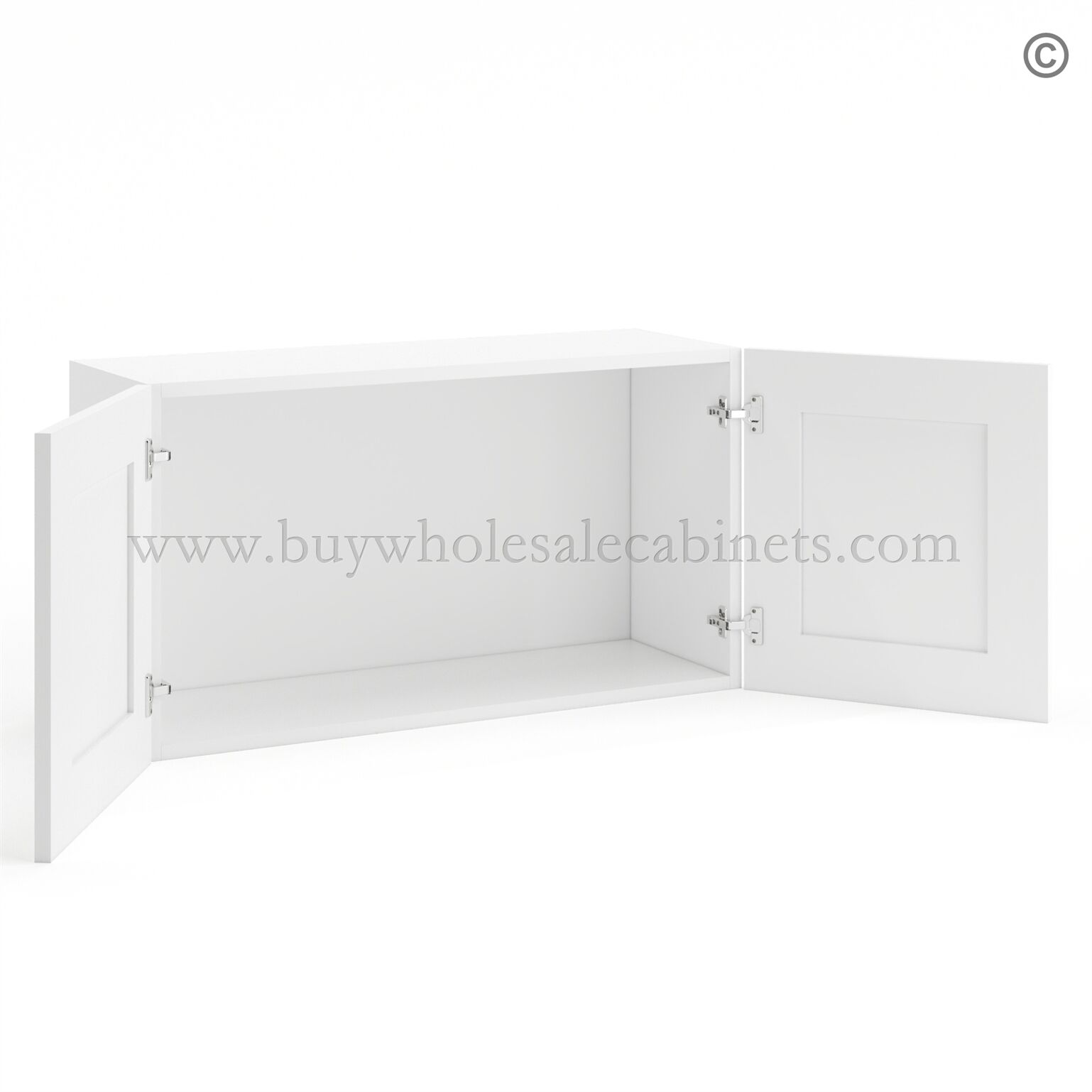Frameless Modern White Shaker 12″ Deep Wall Cabinet – 2 Doors No Shelf