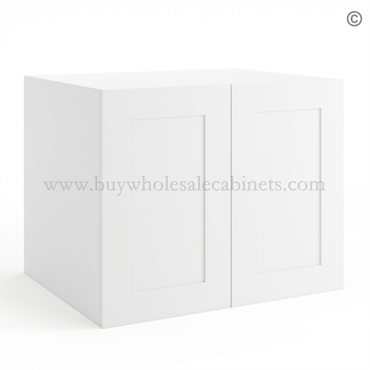 Frameless Modern White Shaker 24″ Deep Wall Cabinet – 2 Doors 1 Shelf