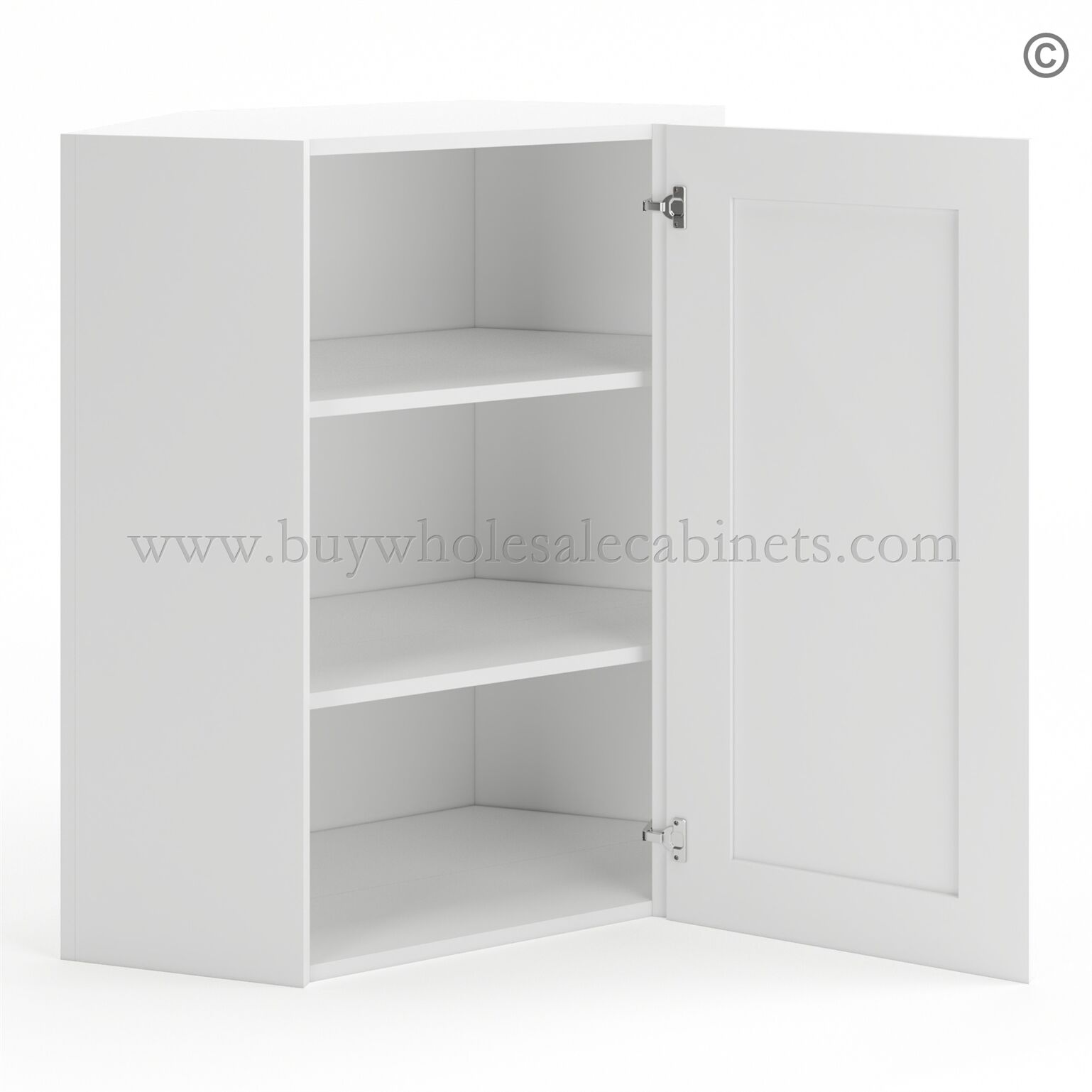 Frameless Modern White Shaker 24″ Wide Wall Diagonal Door – 1 Door 2 Shelves