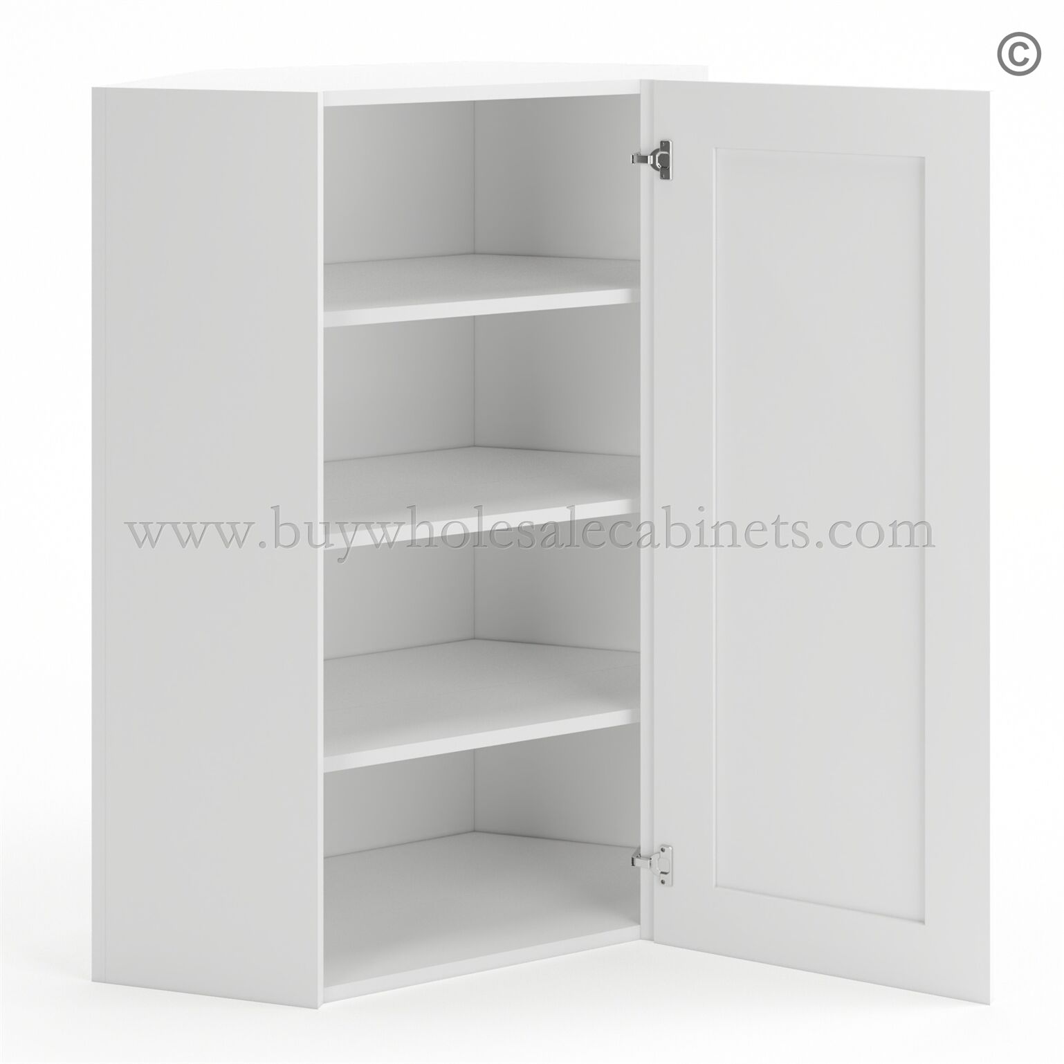 Frameless Modern White Shaker 24″ Wide Wall Diagonal Door – 1 Door 3 Shelves –