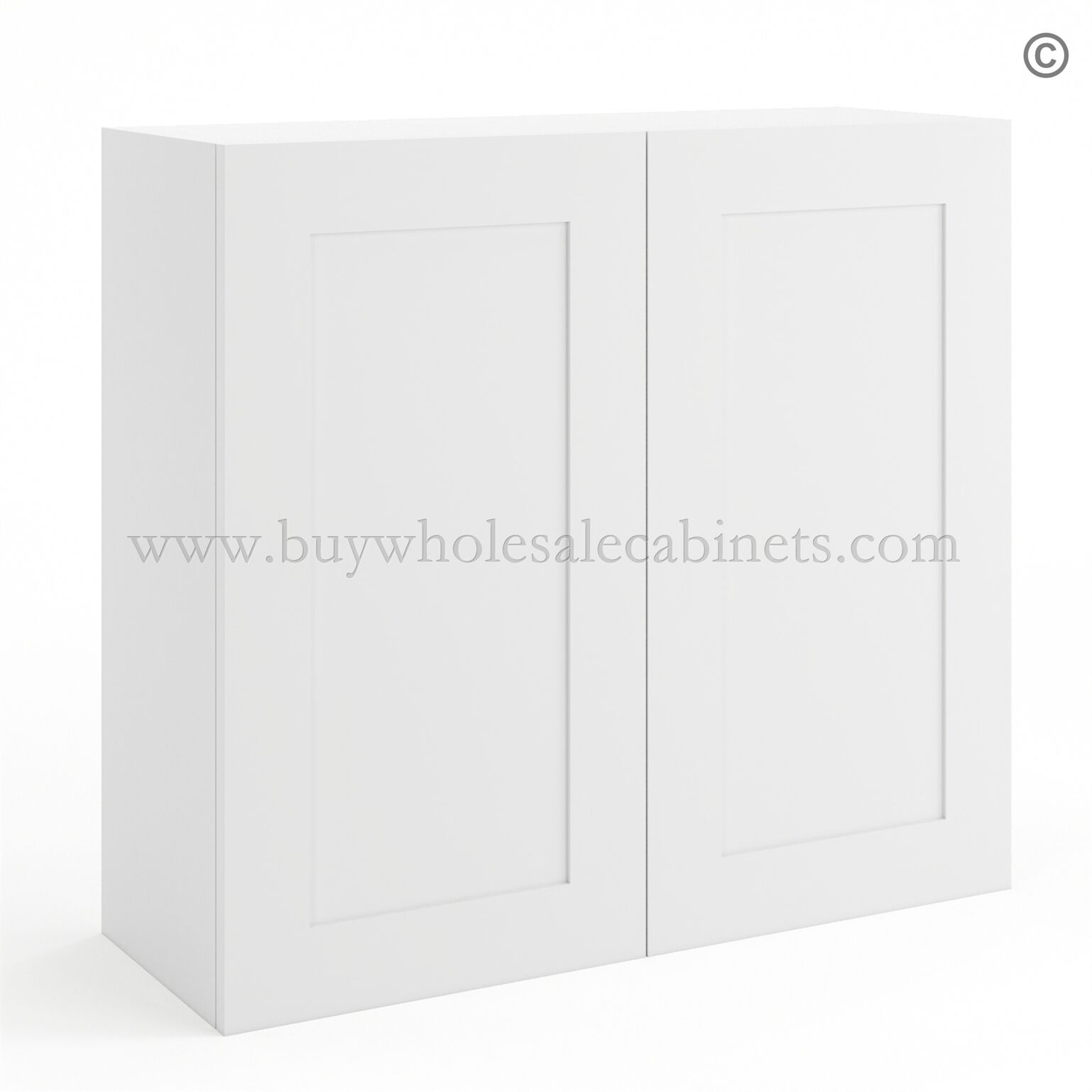 Frameless Modern White Shaker 30″ Tall Wall Cabinet – 2 Doors 2 Shelves