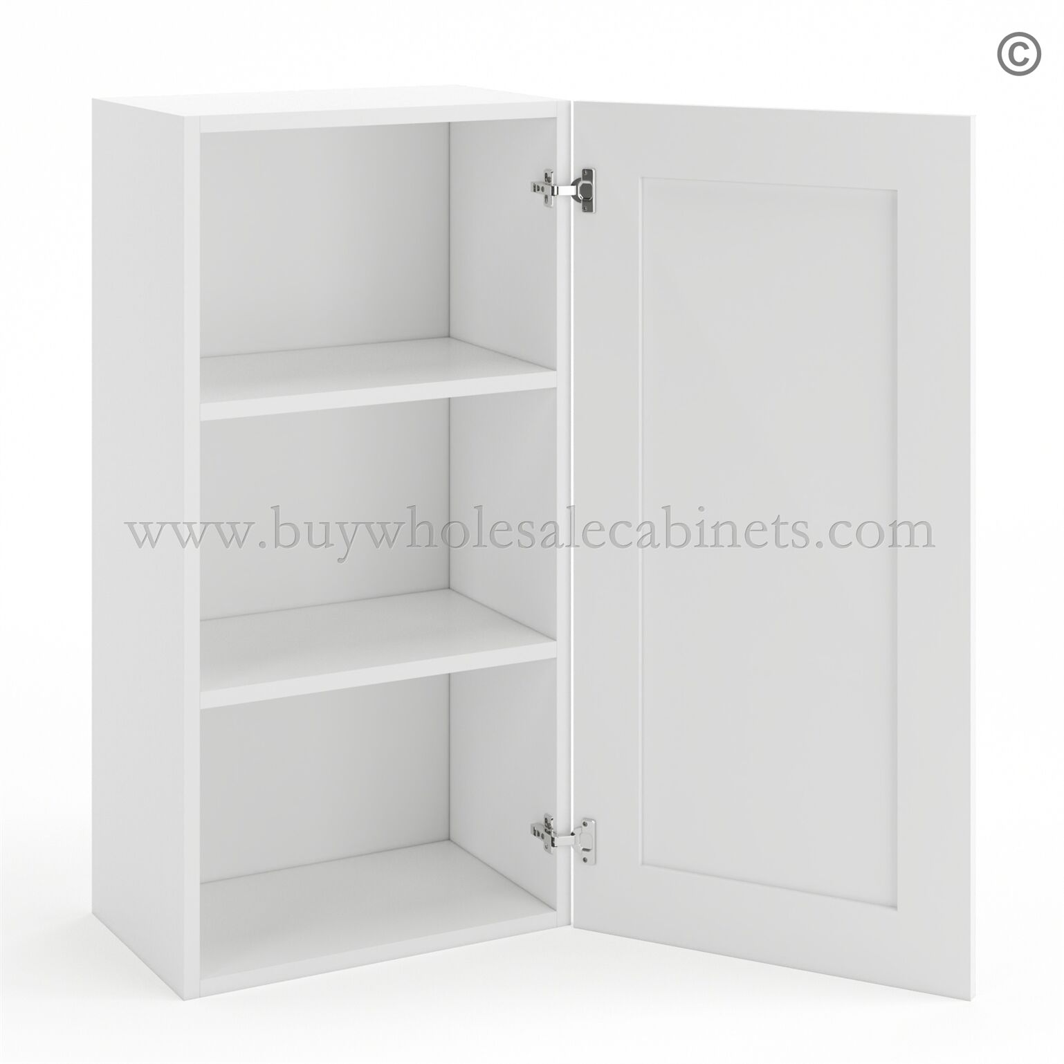 Frameless Modern White Shaker 36″ Tall Wall Cabinet – 1 Door 2 Shelves