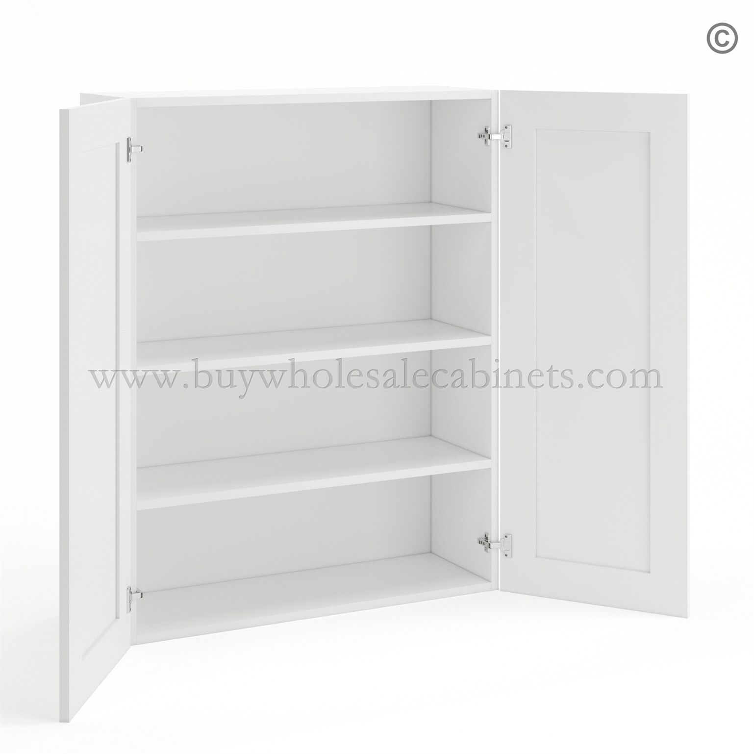 Frameless Modern White Shaker 42″ Tall Wall Cabinet – 2 Doors 3 Shelves