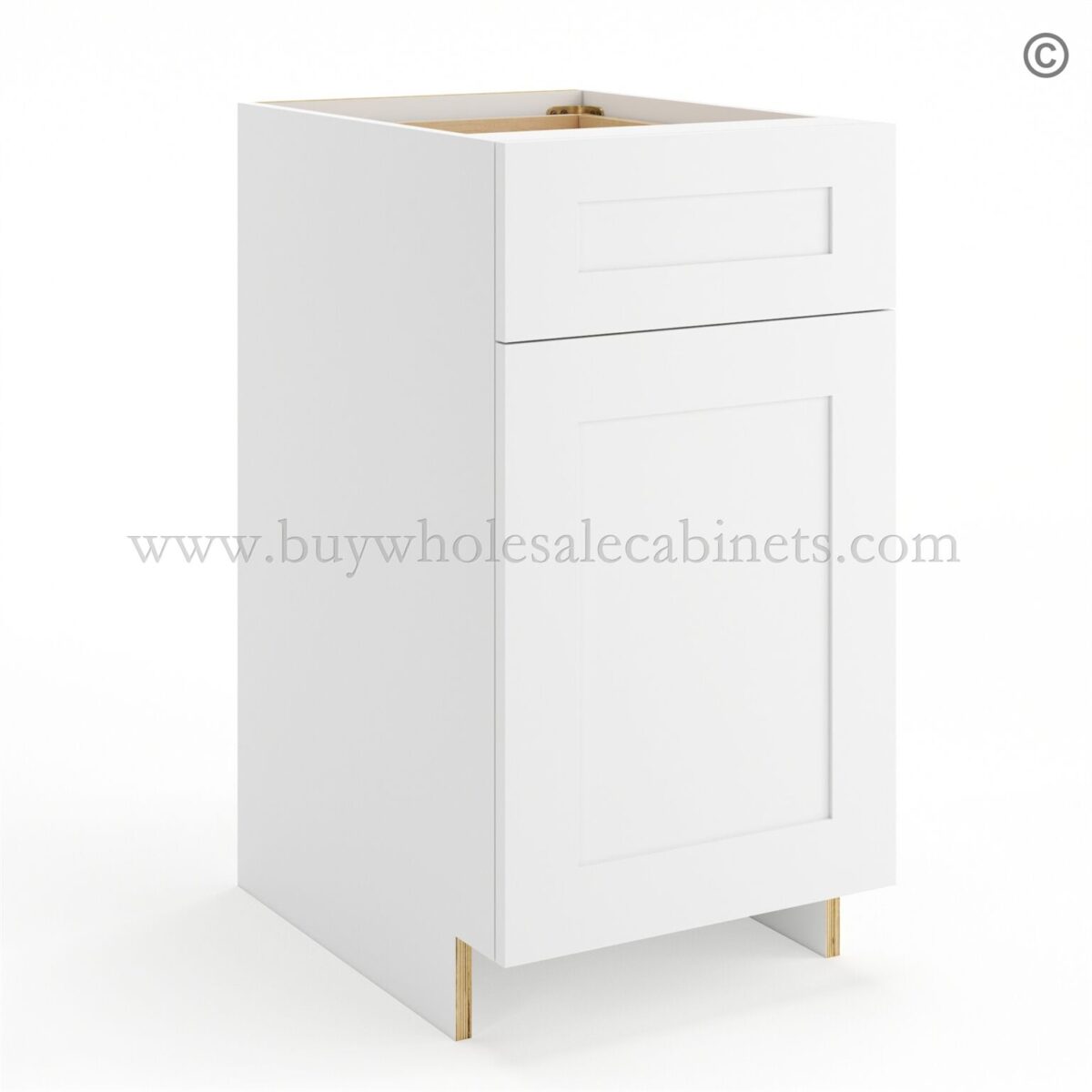 Frameless Modern White Shaker Base Cabinet – 1 Drawer, 1 Door, 1 Shelf