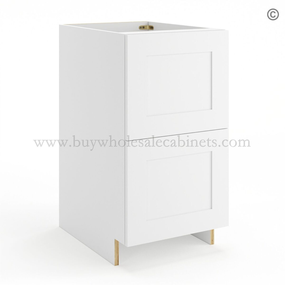Frameless Modern White Shaker Base Cabinet – 2 Drawer