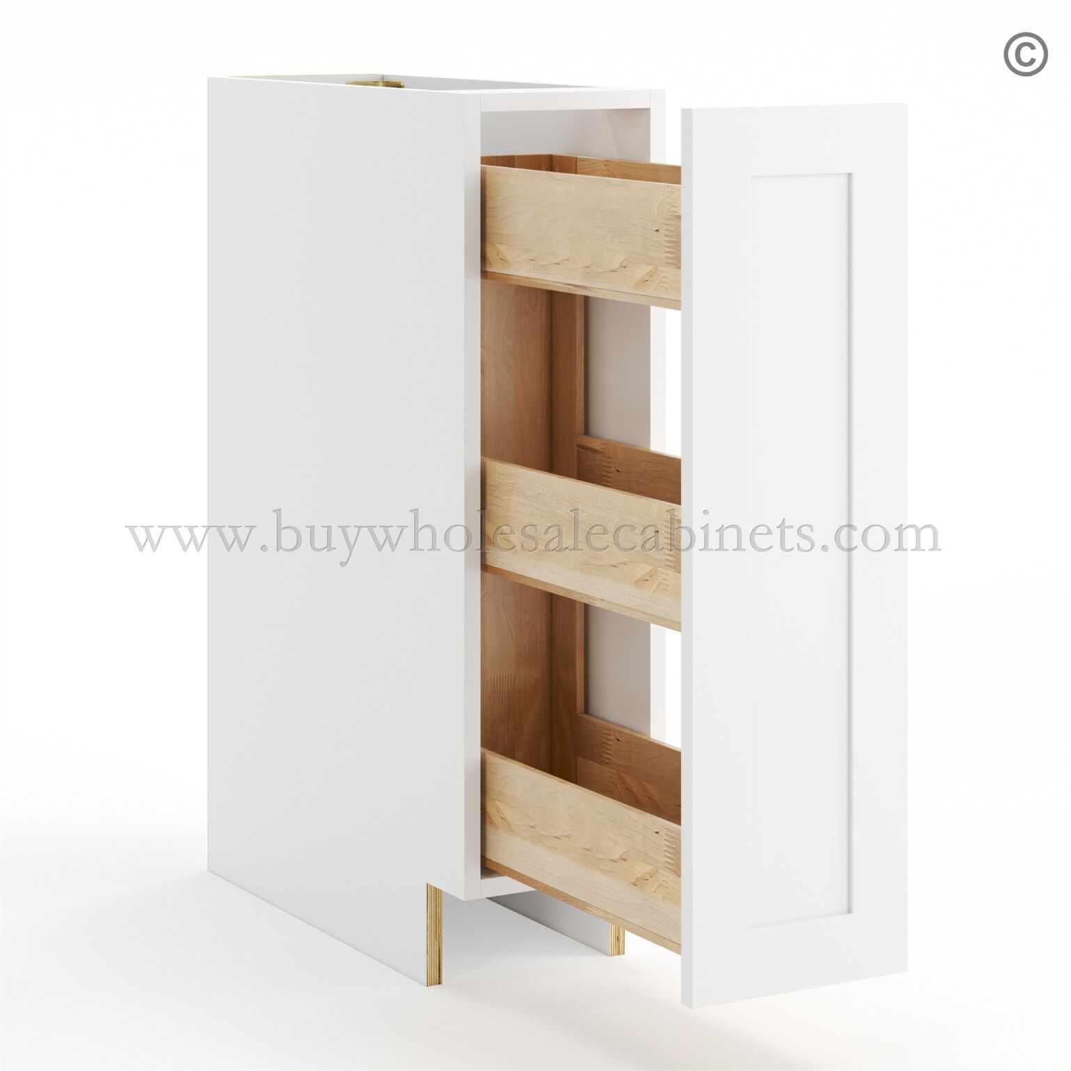 Frameless Modern White Shaker Base Spice Rack Pull Out – 1 Full Height Door