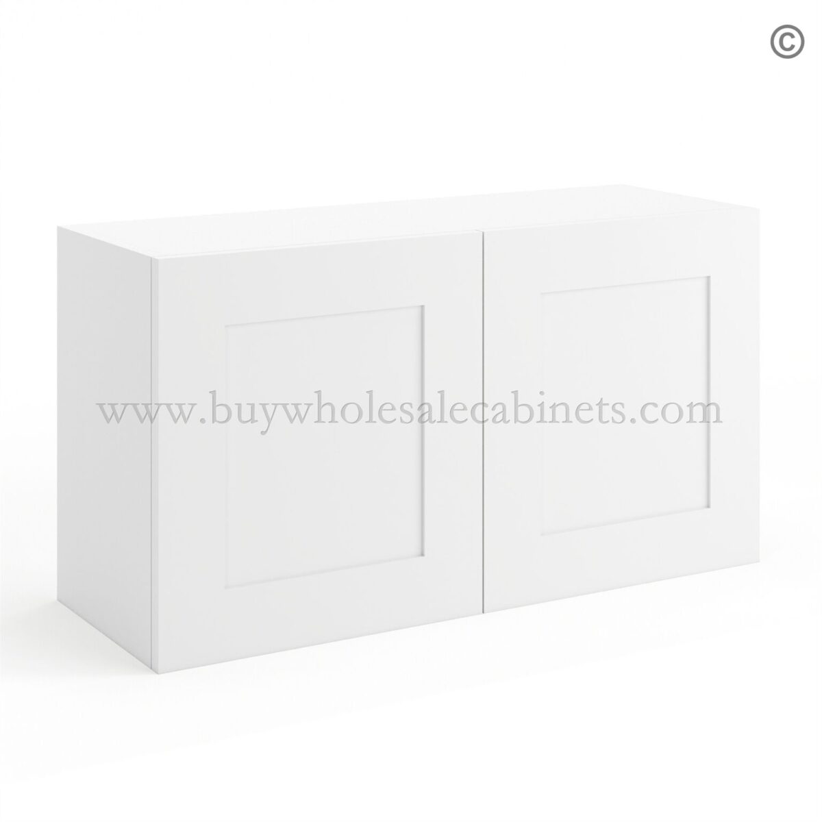 Frameless Modern White Shaker Deep Wall Cabinet – 2 Doors No Shelf – 12″D, 36″W