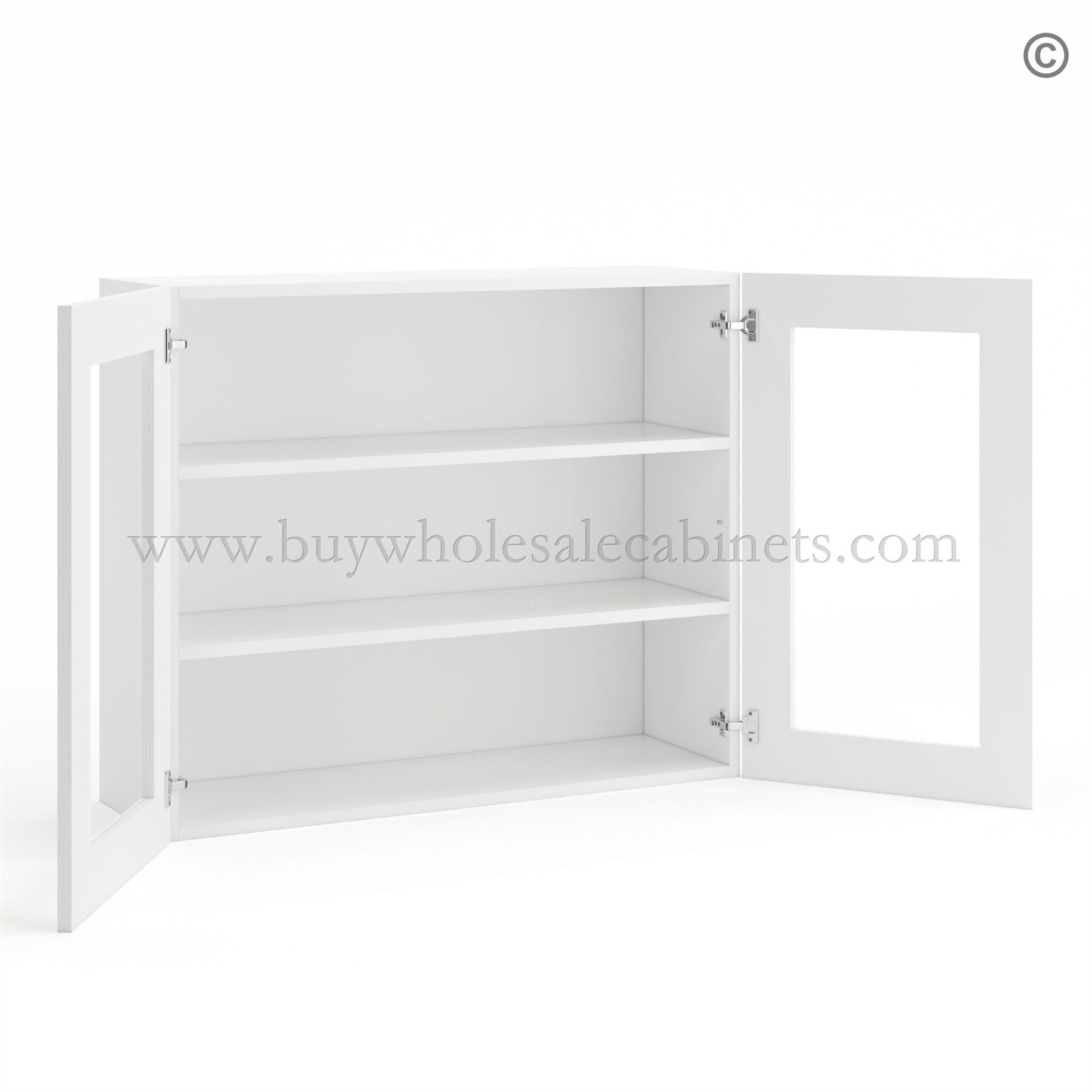 Be the first to review “Frameless Modern White Shaker Wall Mullion Door 30″H – 2 Door 2 Shelves – Glass And Clips Not Included.” Cancel reply