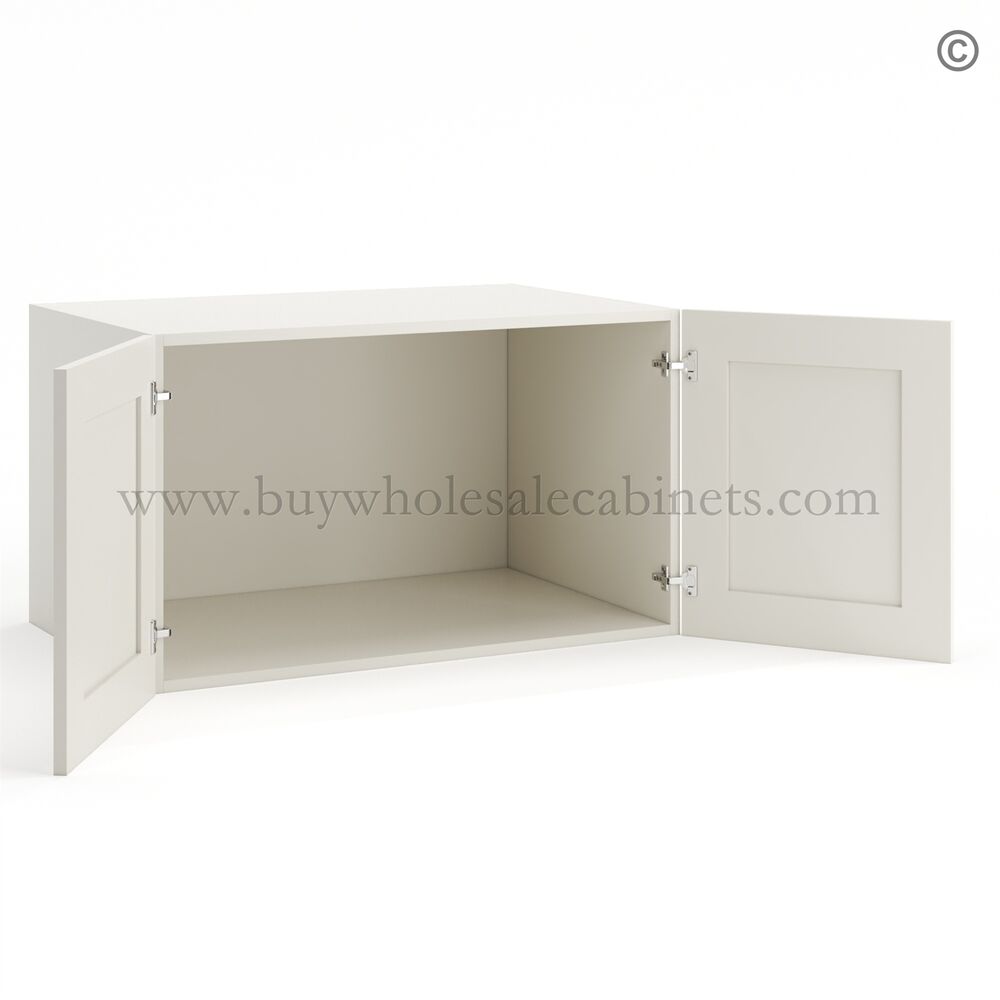 Frameless Pearl White 24″ Deep Wall Cabinet – 2 Doors No Shelf