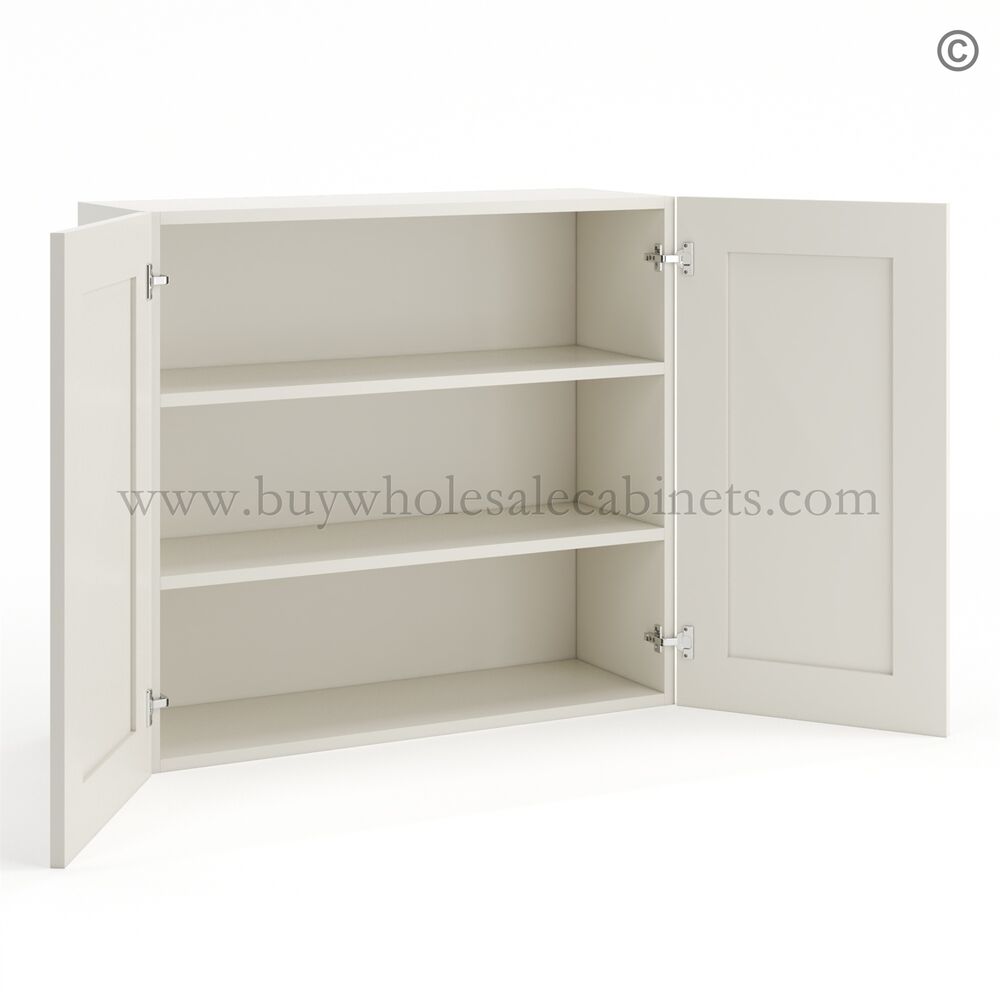 Pearl White 30 Tall Wall Cabinet with 2 Doors 2 Shelves is 30″ high, 12″ deep, and available in five widths (24″, 27″, 30″, 33″, and 36″).