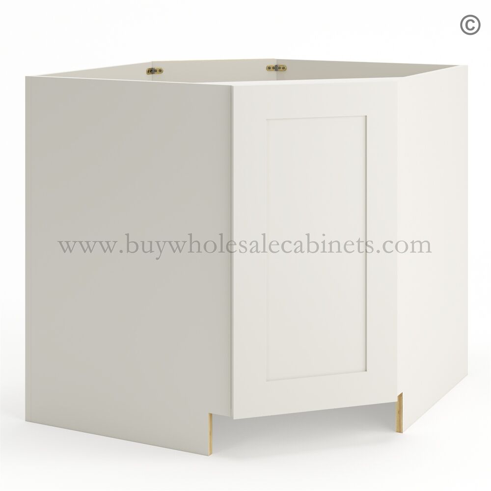 Frameless Pearl White Base Diagonal Cabinet 1 Door (Excludes Metal Lazy Susan Insert)