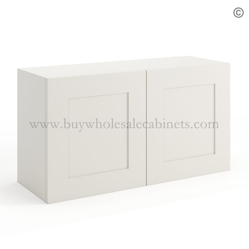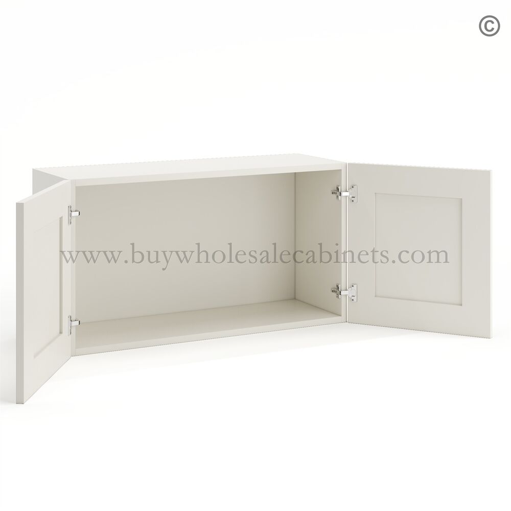 Frameless Pearl White Deep Wall Cabinet – 2 Doors No Shelf – 12″D, 24″W
