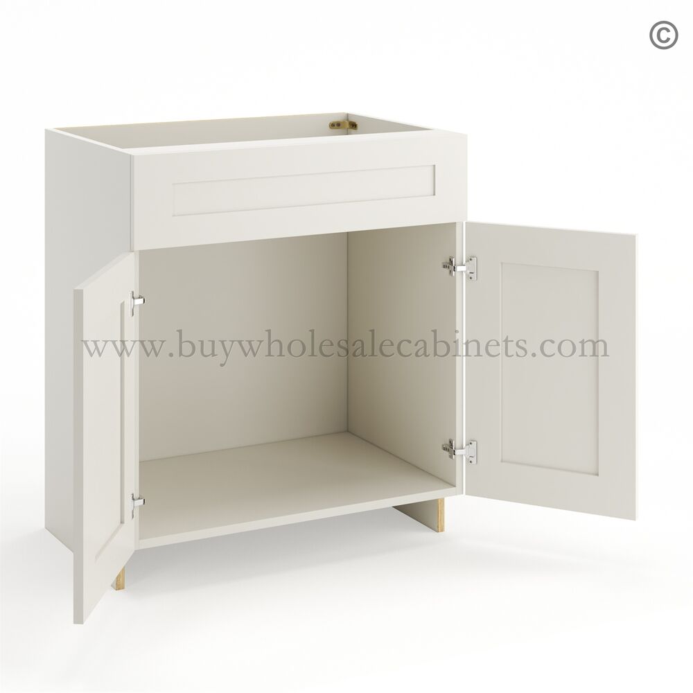 Frameless Pearl White Vanity Sink Base Cabinet – 2 Doors And 1 False Drawer