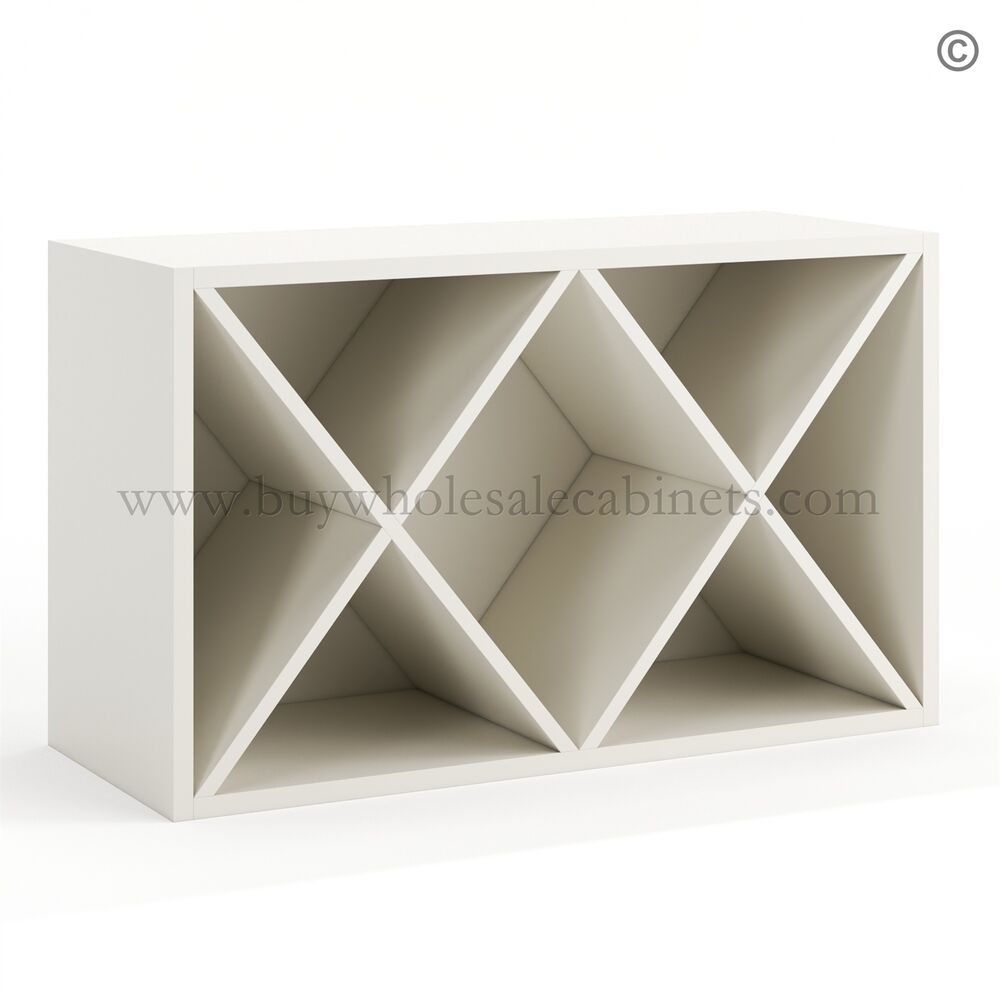 Frameless Pearl White Wine Rack 18″ tall, 12″ deep, and available in two widths ( 30″, 36″).