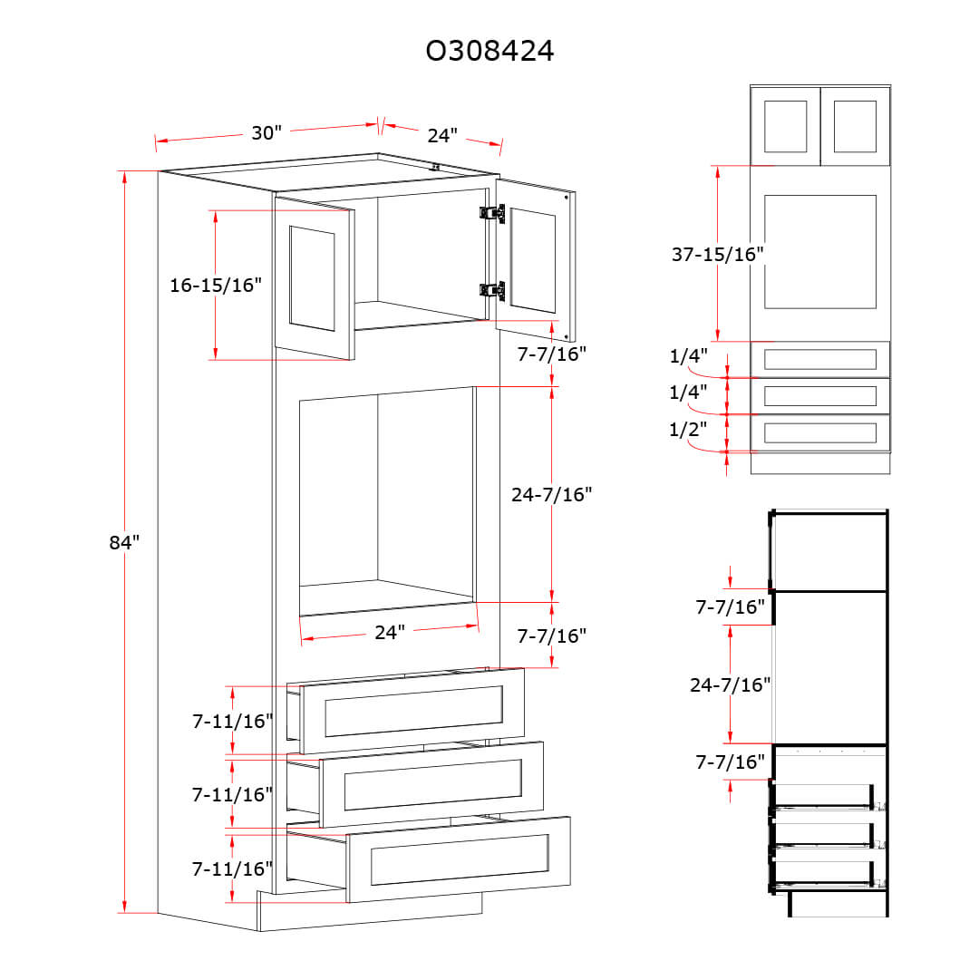 Our Shaker Espresso 30 W Oven Pantry Cabinet is 30″ wide, 24″ deep, and available in 3 heights (84″, 90″, 96″).