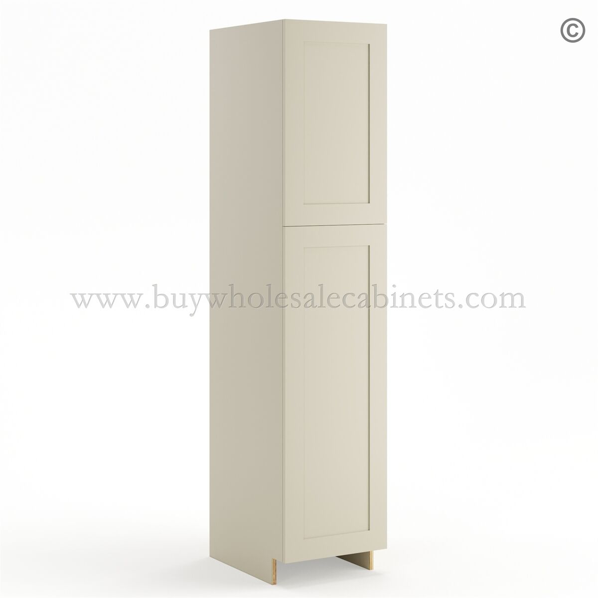 Frameless Ivory White Pantry Cabinet – Double Doors 24″W