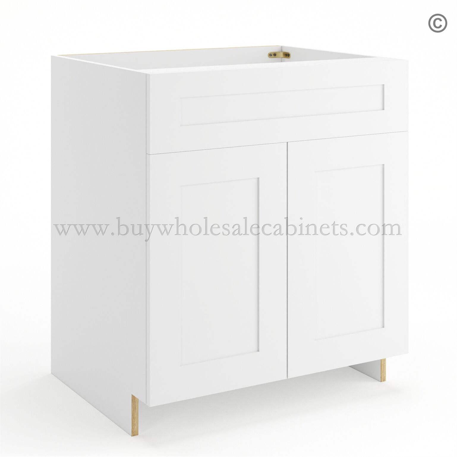 Frameless Modern White Shaker Sink Base Cabinet – 2 Doors & 1 False Drawer