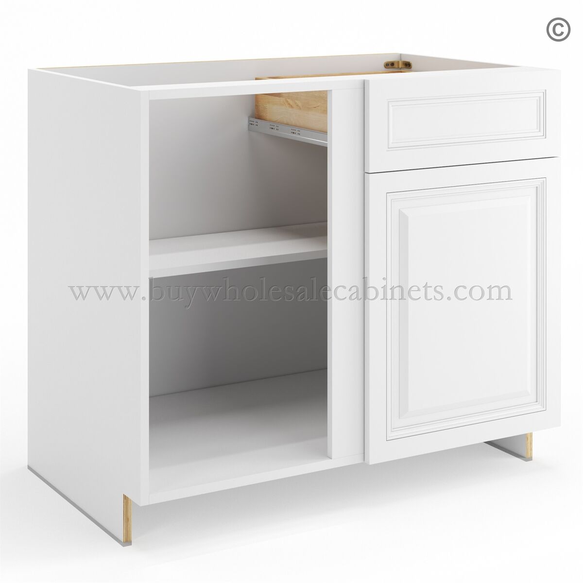 Frameless Modern White Shaker Base Cabinet With Metal Lazy Susan, Folding Doors