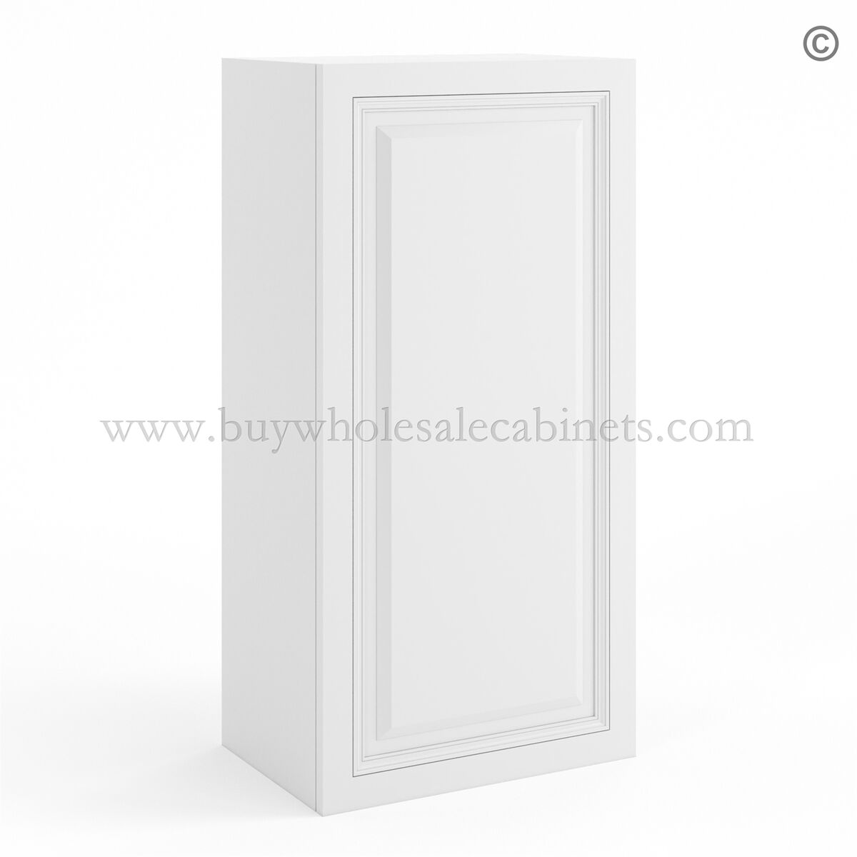 Frameless Pearl White 36″ Tall Wall Cabinet – 1 Door 2 Shelves