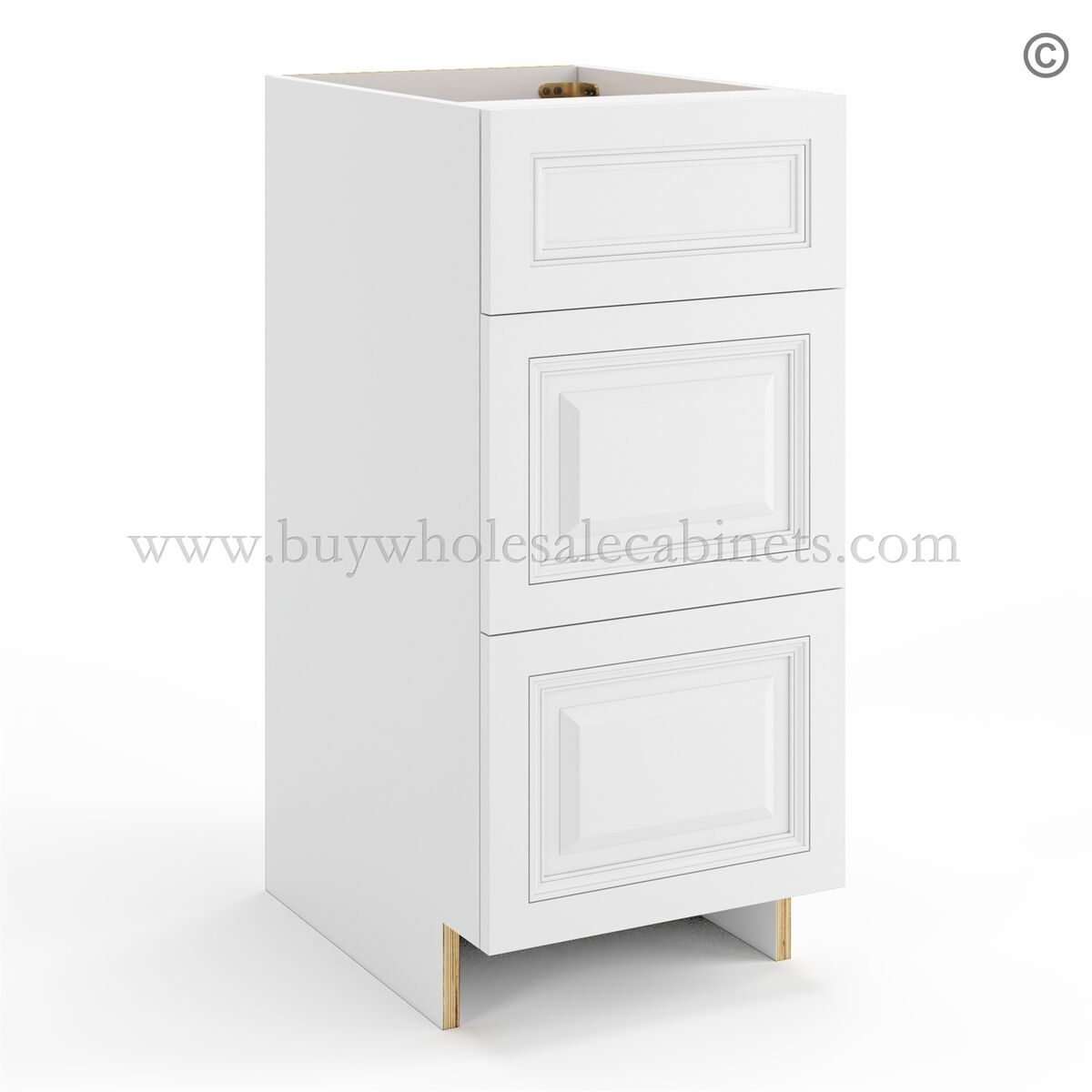 Frameless Modern White Shaker Vanity Base Drawer Cabinet – 3 Drawers