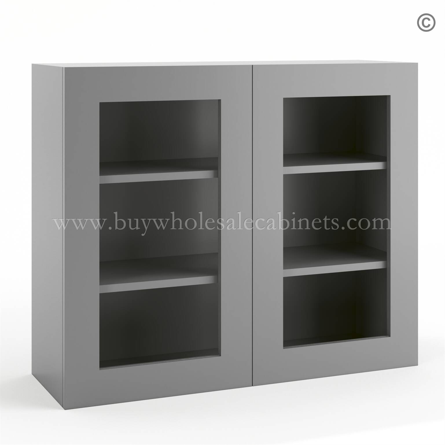 Frameless Graphite Gray Wall Mullion Door 30″H – 2 Door 2 Shelves – Glass And Clips Not Included.