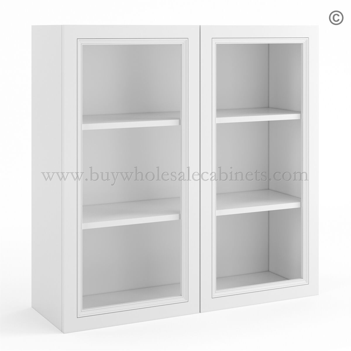 Frameless Modern White Shaker Wall Mullion Door 36″H – 2 Door 2 Shelves – Glass And Clips Not Included.