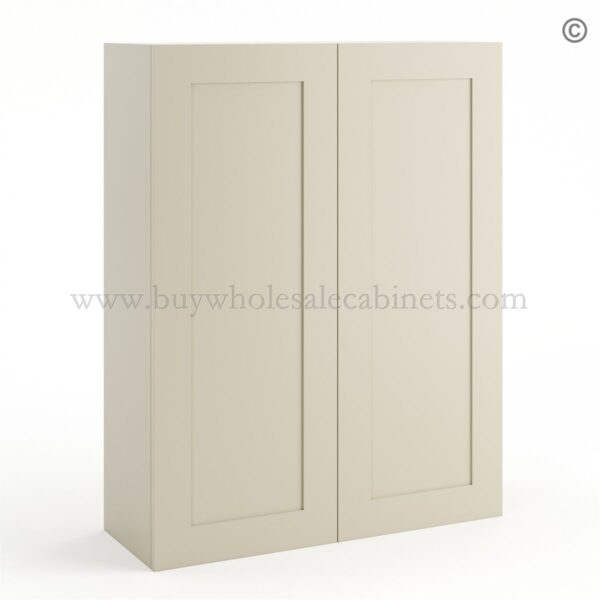 Frameless Ivory White 42″ Tall Wall Cabinet – 2 Doors 3 Shelves