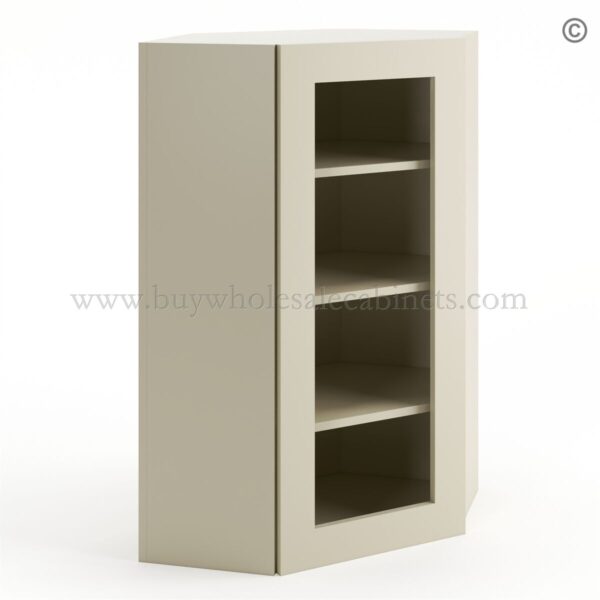 Frameless Ivory White Wall Diagonal Mullion Door – 1 Door 3 Shelves – No Glass
