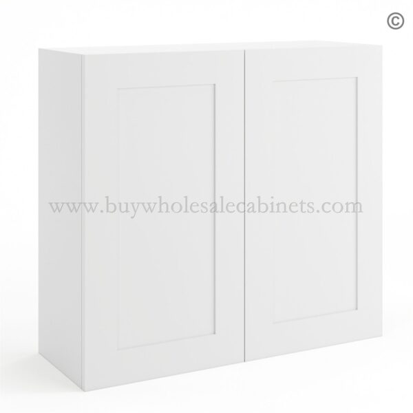 Frameless Modern White Shaker 30″ Tall Wall Cabinet – 2 Doors 2 Shelves