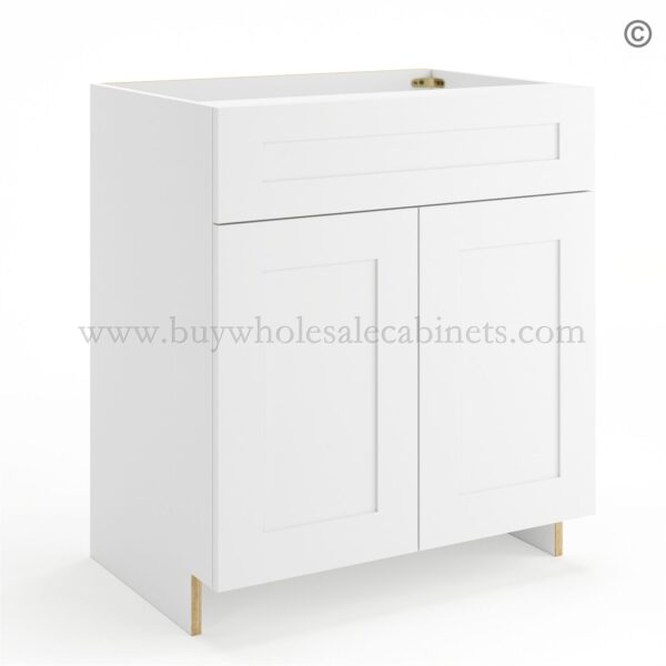 Frameless Modern White Shaker Vanity Sink Base Cabinet – 2 Doors And 1 False Drawer