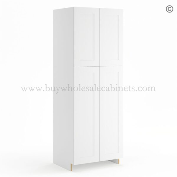 Frameless Modern White Shaker Pantry Cabinet – Double Doors 30″W
