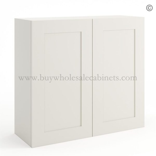 Frameless Modern White Shaker 30″ Tall Wall Cabinet – 2 Doors 2 Shelves