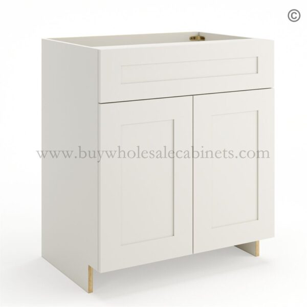 Frameless Modern White Shaker Vanity Sink Base Cabinet – 2 Doors And 1 False Drawer