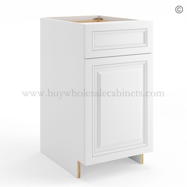 Frameless Ivory White Base Cabinet – 1 Drawer, 1 Door, 1 Shelf