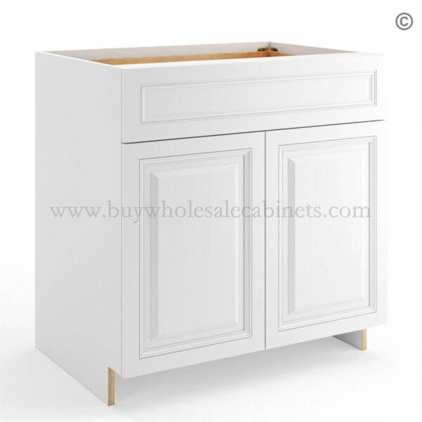 Frameless Modern White Shaker Base Cabinet – 1 Drawer, 2 Doors, 1 Shelf