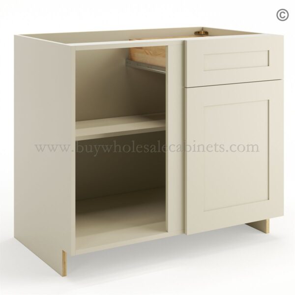 Frameless Ivory White Base Cabinet With Metal Lazy Susan, Folding Doors