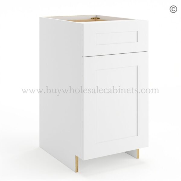 Frameless Modern White Shaker Base Cabinet – 1 Drawer, 1 Door, 1 Shelf