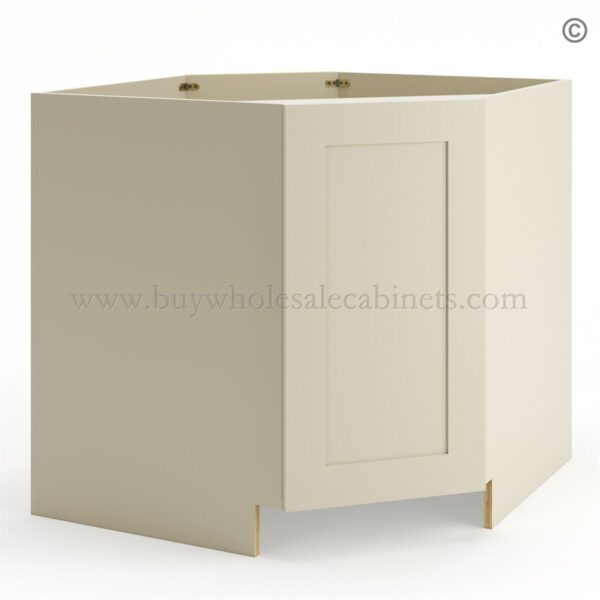 Frameless Ivory White Base Diagonal Cabinet 1 Door (Excludes Metal Lazy Susan Insert)